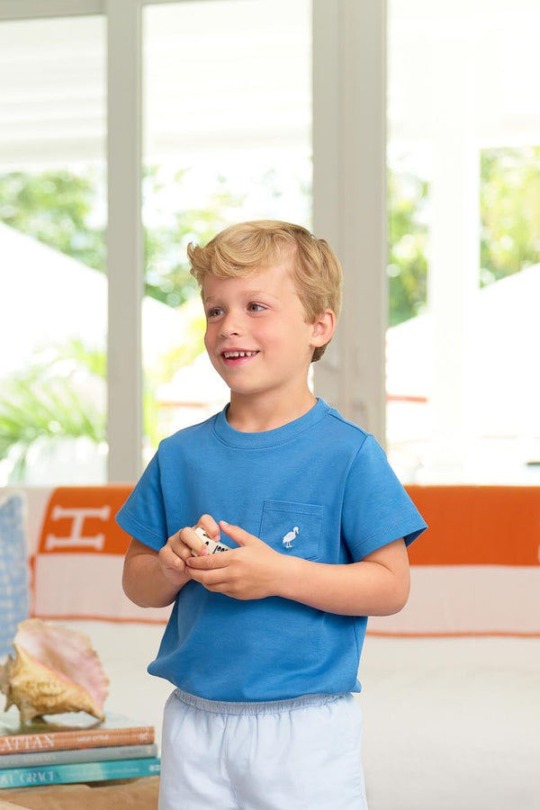 The Carter Crewneck in Wood Boat Blue with Multicolor Stork brings timeless charm to his everyday wardrobe. Crafted from premium cotton with our signature embroidered stork detail, this versatile piece pairs effortlessly with everything from khakis to shorts. A preppy essential that's built to last through seasons of play and adventure.