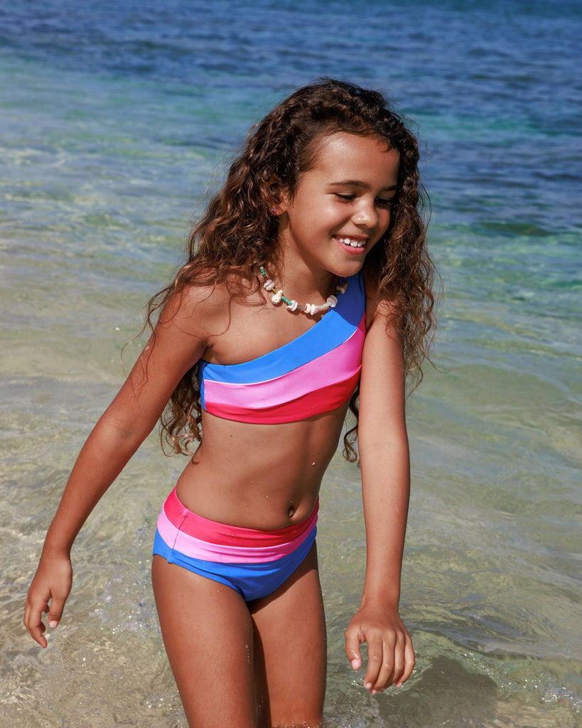 🌸 Design Detail – Chic one-shoulder top with an adjustable, removable strap and a high-waisted bottom for a comfortable, stylish fit